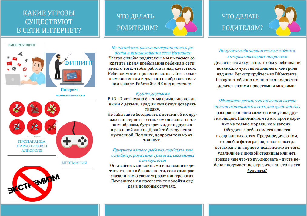 С каждым годом молодежи в интернете становиться больше, а школьники одни из самых активных пользователей Рунета. Между тем, помимо огромного количества возможностей, интернет несет и проблемы. Эта памятка должна помочь тебе безопасно находиться в сети.